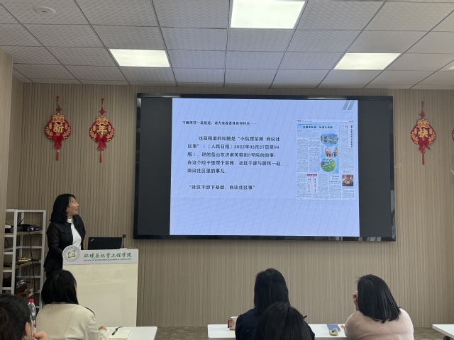 为进一步贯彻落党的二十届三中全会精神,深入学习习近平文化思想的核心要义,切实增强全体党员干部做好新时代意识形态工作的政治自觉、思想自觉和行动自觉,4月15日,环化学院在环化楼A213举办宣传队伍为专题培训会,特邀校宣传部孟繁晨、樊丽达两位老师来院授课,为学院新闻宣传能力“充电蓄能”。学院党委书记陶莹、副书记涂莹亮、副院长时鹏辉,学院全体行政人员、辅导员、各基层党组织宣传委员参与培训。