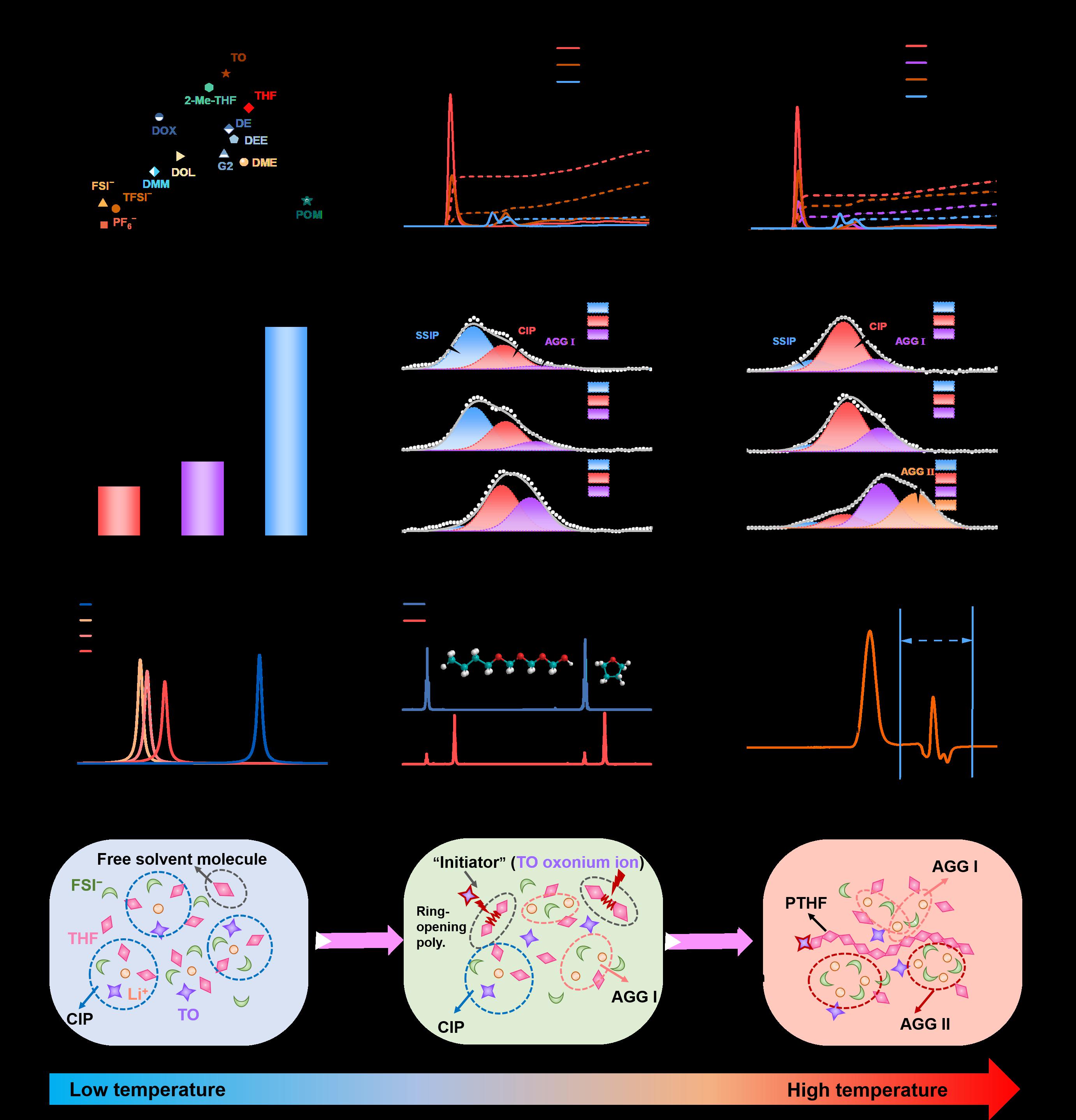 近日,我校英国365上市公司闵宇霖教授团队研究开发了一种基于醚基的热响应电解质,其Li+溶剂化结构随温度变化而改变,有助于形成多晶电极/电解质界面,从而实现锂金属电池在宽温域(−60 ~ 60oC)下的安全稳定运行。相关成果以“Thermoresponsive ether based electrolyte for wide temperature operating lithium metal batteries”为题发表在Nature子刊《自然·通讯》(Nature Communications DOI : 10.1038/s41467-025-60524-8)上,标志着我校在国际储能电池材料与安全领域占有一席之地。论文第一作者为我校英国365上市公司2024届硕士研究生顾榕,目前在同济大学攻读博士学位,徐巾婷博士、朱晟副教授、时鹏辉教授和闵宇霖教授为通讯作者,365上市公司为论文唯一署名单位。