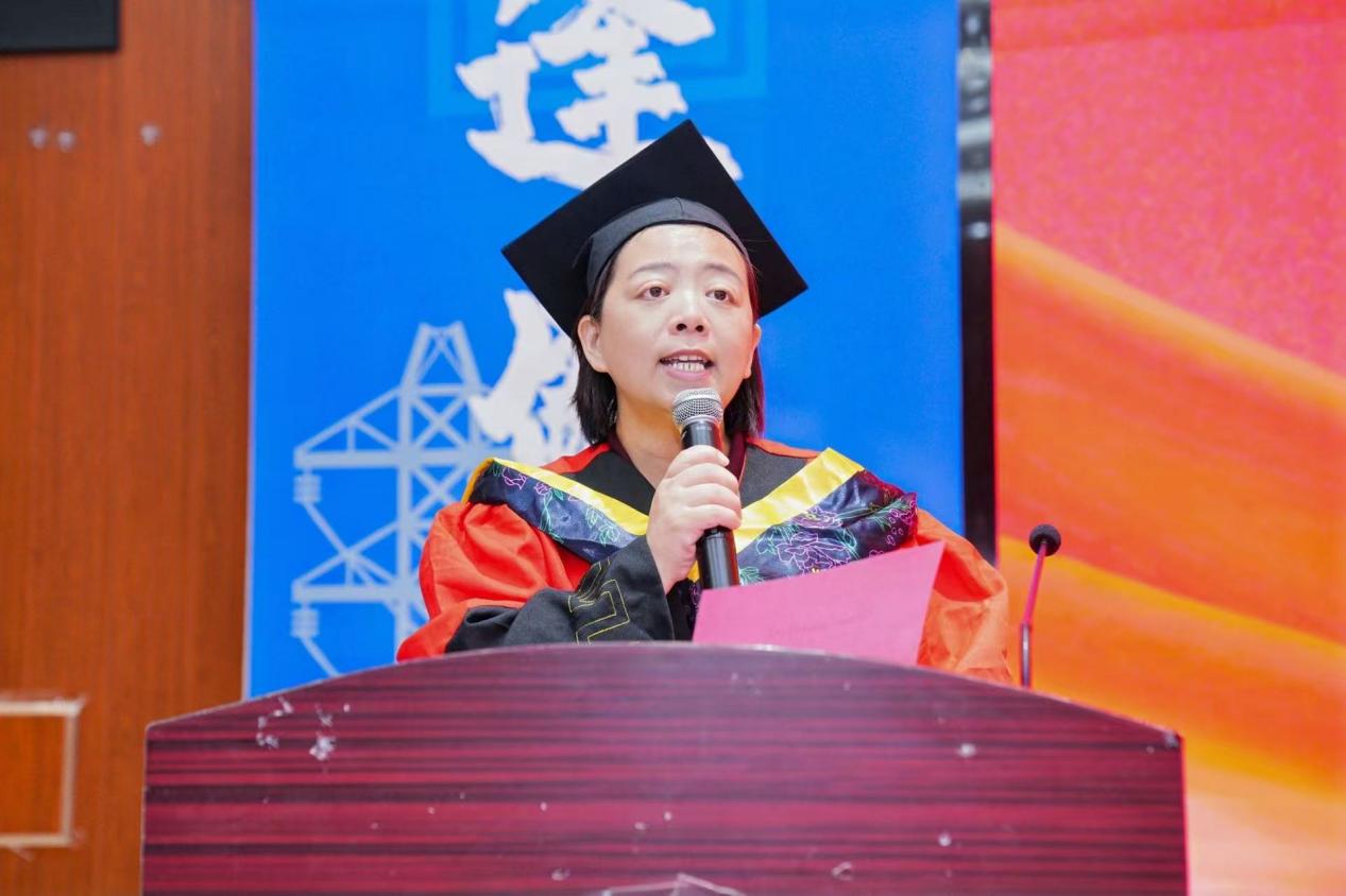 拨穗与祝福共赴未来。副院长辛志玲庄严宣读学士学位授予决定后,学位授予仪式开始。毕业生依次登台接受拨穗礼。老师们逐一为学子拨正流苏、颁发学位证书,每一次握手与祝福都凝结着对青春的礼赞。
