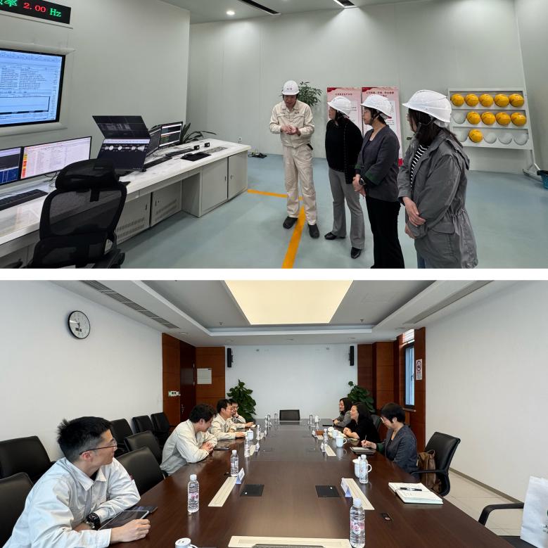 当日上午,陶莹一行抵达上海申能奉贤热电有限公司。该公司作为大型国有企业,聚焦发电、输电、供电核心业务,拥有技术先进、运行高效的火力发电设备体系,在行业内具有较高的知名度和影响力。在综合工作部负责人的引导下,学院一行实地考察了火电集控中心,直观感受企业智能化生产流程的高效与精准。交流会上,总经理赵维详细阐述企业发展历史、战略规划及人才需求,并对学院毕业生专业素养高、实践能力强的特点给予高度评价。陶莹则从学科优势、学生培养、校企合作项目等方面作详细介绍。双方围绕人才培养、学生就业实习、产教融合等方面深入探讨并达成共识,着力构建“学生走进企业、企业走进课堂”的校企合作机制。这一合作机制将充分发挥企业的实践优势和高校的科研优势,为学生提供更加丰富的实践机会和更广阔的发展空间。
