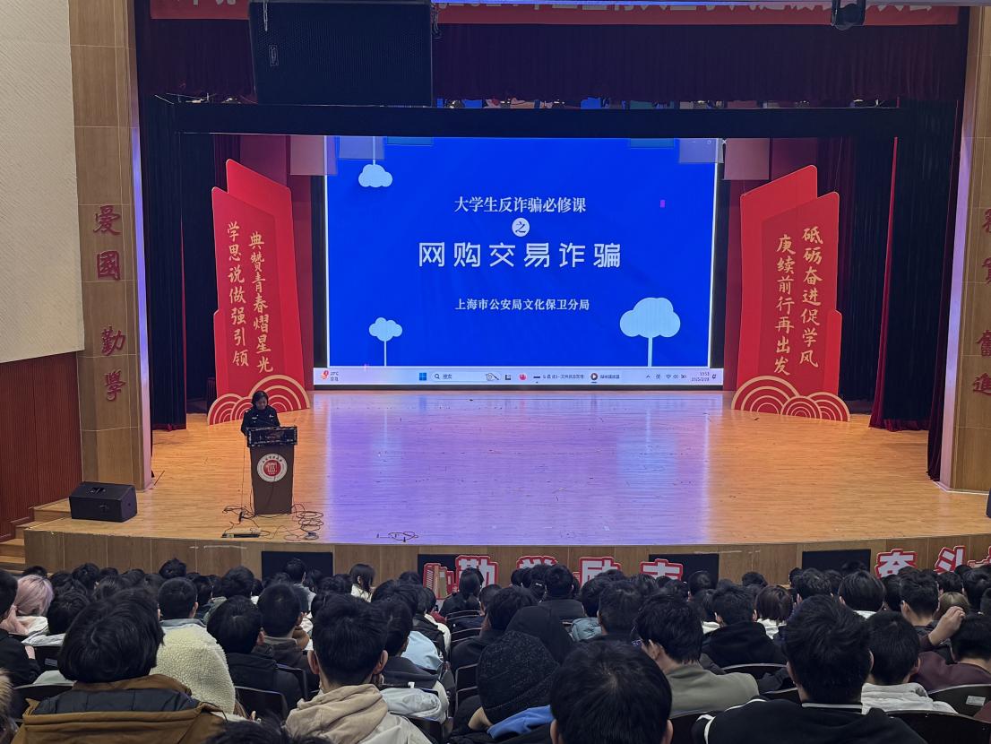 2 月 28 日,我院特别邀请临港高校派出所警官朱红以及我校保卫处保卫科王旭走进课堂,为学生们带来了一场别开生面的沉浸式反诈教育体验。朱红警官聚焦于学生群体中高发的冒充熟人诈骗、网络裸聊诈骗、网