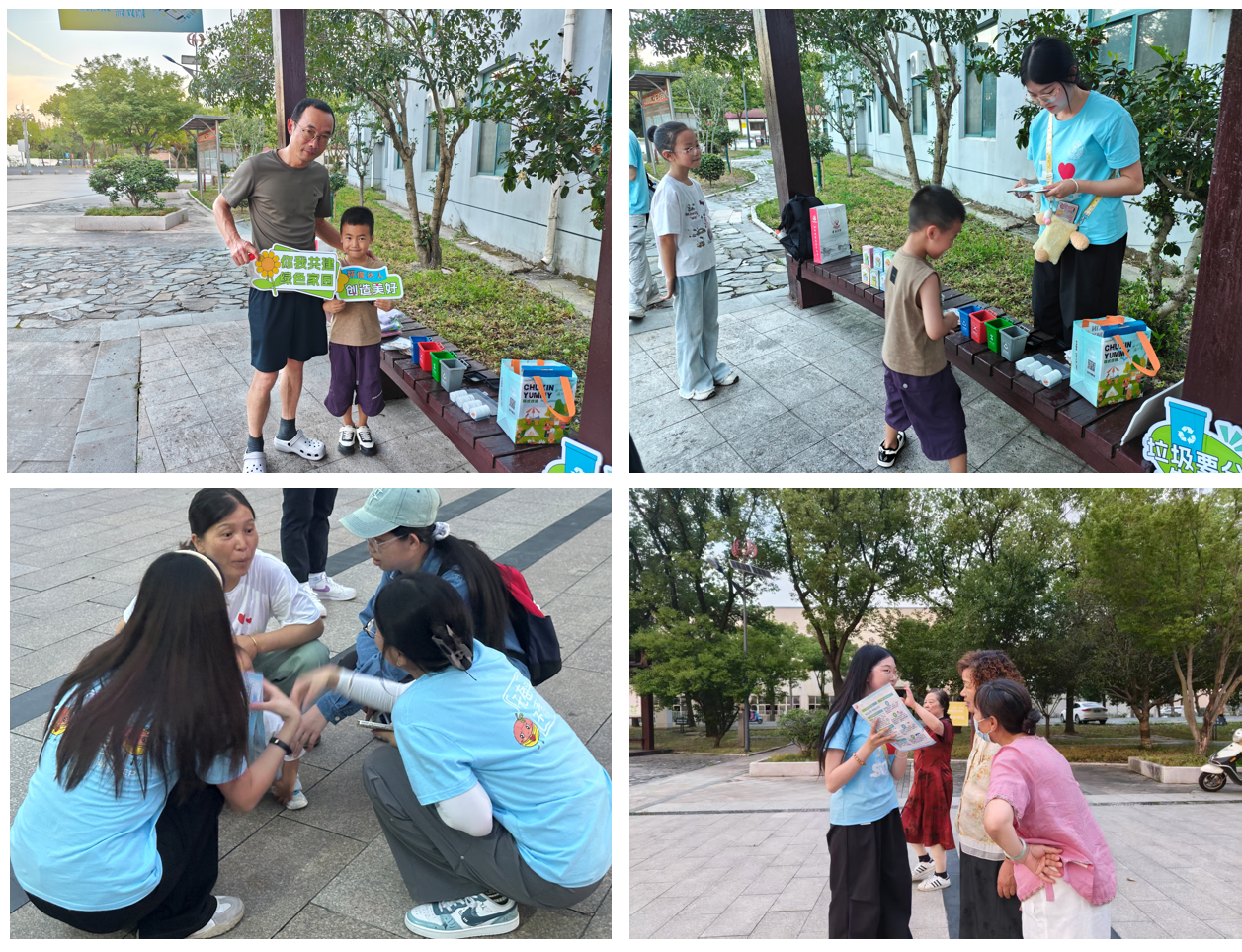 深耕环保理念普及,推动生活方式转型。团队调研中发现,环保理念已深度融入村民日常生活。便利店经营者介绍道:“垃圾分类已写入村规民约,抖音科普也让环保知识更接地气。”在蒋巷生态园,实践队创新开展“零碳小课堂”,通过垃圾分类游戏、植物书签制作等互动活动向儿童传播环保理念;傍晚的广场宣传中,队员们用方言讲解节能技巧,吸引近百名村民参与。
