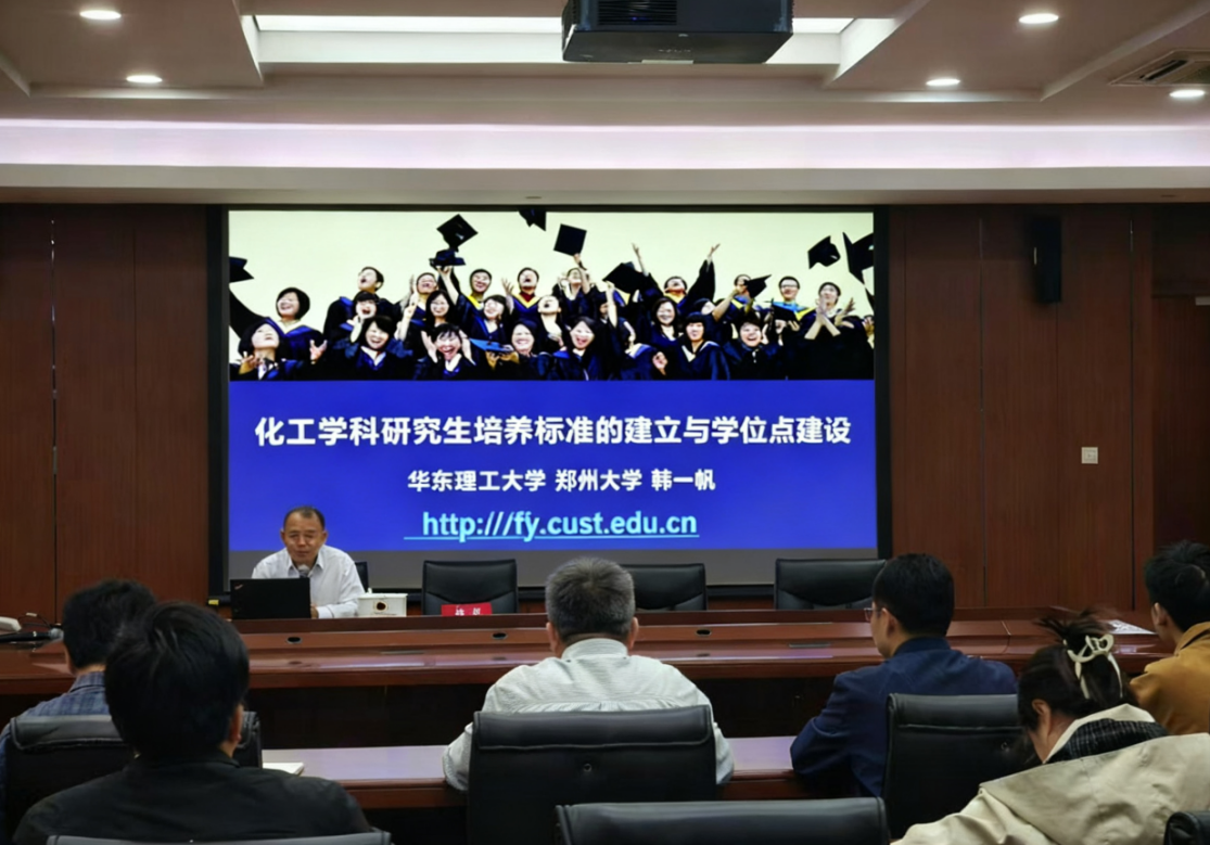 会见结束后,韩一帆教授于学术楼303报告厅作“化工学科研究生培养标准的建立与学位点建设”的专题报告。环化学院党委书记常华、院长闵宇霖,各系主任、副主任、专业负责人、青年教师及研究生代表共同参加了此次报告,本次论坛由院长闵宇霖主持。