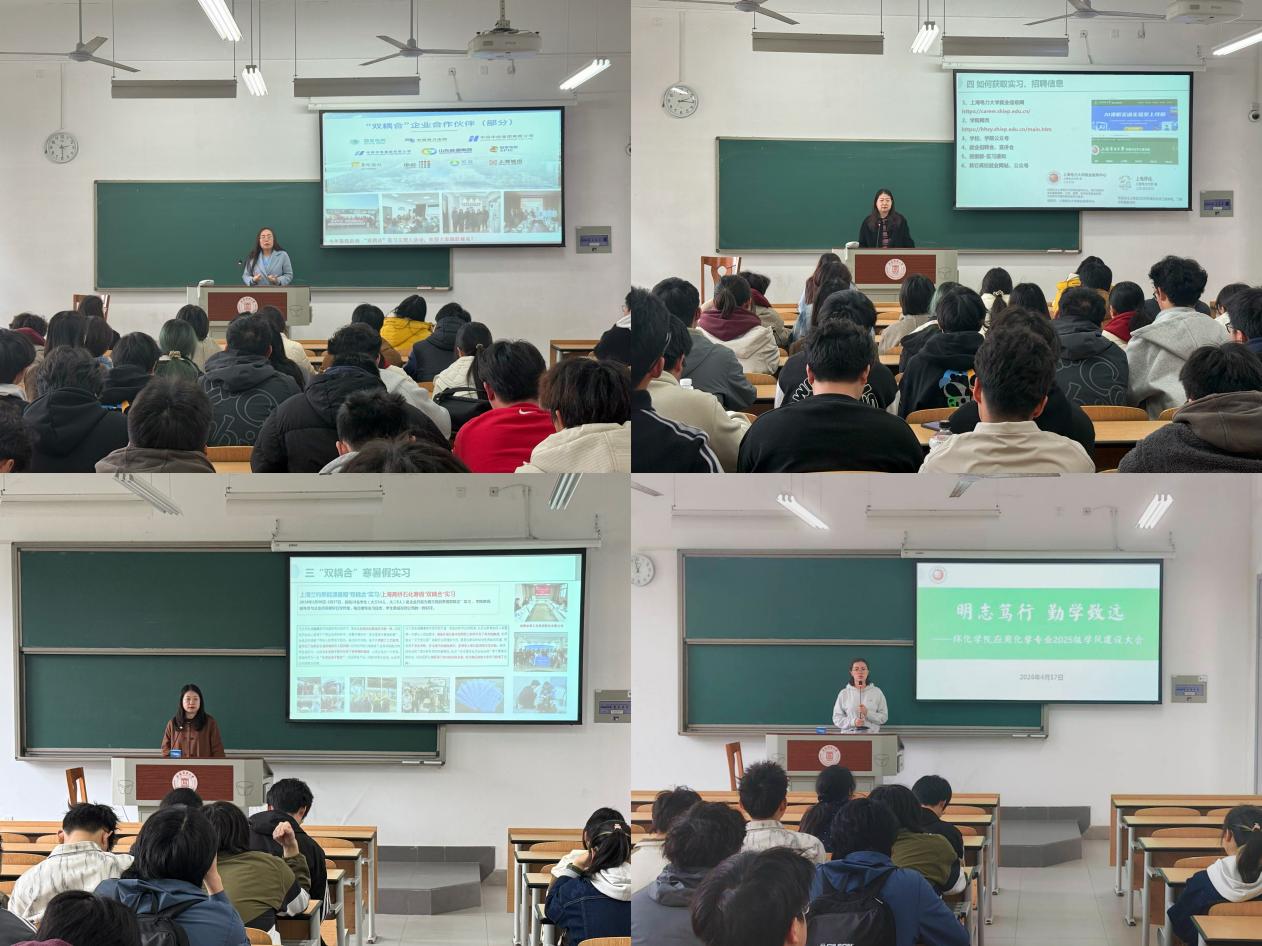 双耦合赋能实践,点燃假期增动能。针对实习实践这一人才培养的关键环节,会上重点强调“从大一开始做好规划”的重要性。周冬梅系统宣讲了实习实践相关政策,明确指出参与高质量实习实践是提升综合能力、增强就业竞争力的必由之路,并重点介绍了学校“双耦合”人才培养计划。分享了学院组织学生赴上海兰钧新能源、上海高桥石化公司开展“双耦合”实习实践取得的丰硕成果,号召全体同学积极关注并踊跃参与暑假即将启动的“双耦合”项目,争当“双耦合”学生主理人,在真实产业场景中检验所学、锤炼本领、拓展视野。