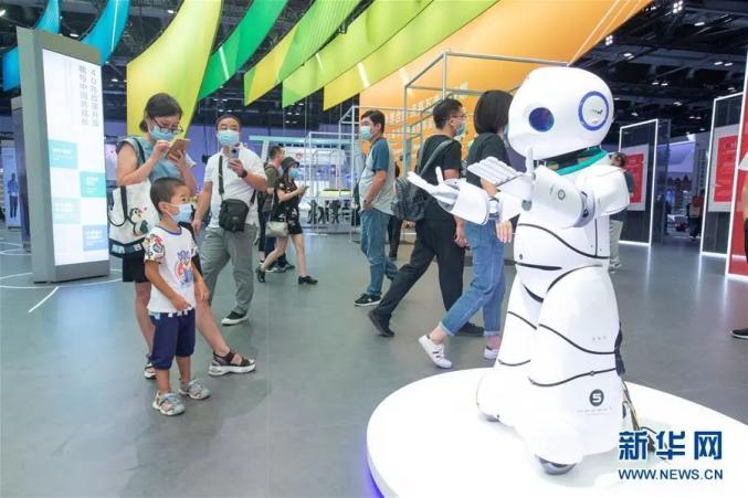 观众在2020年中国国际服务贸易交易会上观看一款智能机器人(9月8日摄)。徐金泉 摄