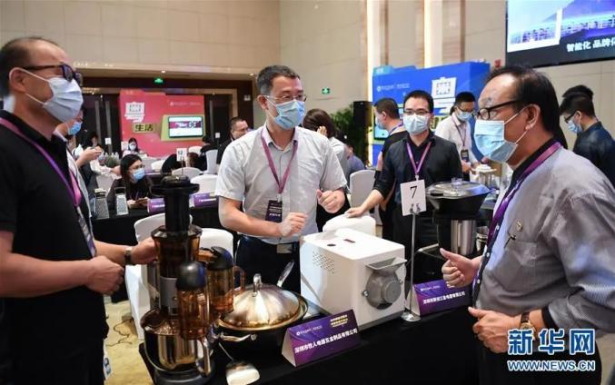 在第128届网上广交会的线下双循环贸易促进活动上,企业代表和采购代表洽谈业务(10月16日摄)。邓华 摄