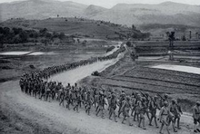 1942年1月,在美、英两国建议下,设立中国战区统帅部,3月,日军进攻缅甸,英国守军告急。中国以陆军第5、第6、第66军为主共10万余人组成中国远征军第1路,在司令长官罗卓英指挥下,进入缅甸与盟军并肩作战。8日,日军第15军在司令官饭田祥二郎指挥下登陆仰光,分路北进,企图切断中国西南国际交通线。在我远征军前赴后继的猛烈进攻下,彻底打破了日寇“铁龙陵钢松山,遮放芒市鬼门关”的神话。滇缅路全线打通后,盟军援华物资源源而来,为迫使日寇投降、实现抗战最后胜利起了无可估量的作用。