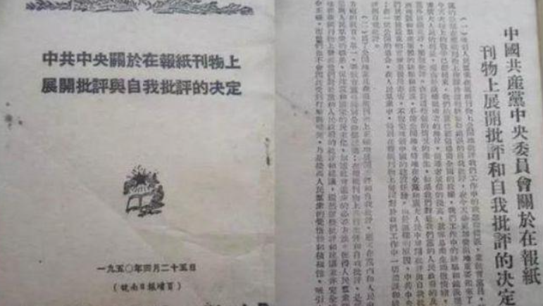 中共中央发出《关于在报纸刊物上展开批评和自我批评的决定》。决定指出,我们的党已领导着全国的政权,工作中的缺点错误很容易危害人民的利益;领导者的地位,又容易产生骄傲情绪、拒绝批评,压制批评。为此,中共中央特决定:“在一切公开的场合,在人民群众中,特别在报纸刊物上展开对于我们工作中一切错误和缺点的批评与自我批评。”