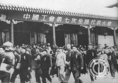 5月2日至11日 中国工会第七次全国代表大会在北京举行。刘少奇代表中共中央在大会上致祝词。大会制定了工会在国家进入有计划建设时期的方针和任务,通过了《关于中国工会工作的报告的决议》《关于修改中国工会章程的决议》和《中华人民共和国工会章程》,并选举出中华全国总工会第七届执行委员会。12日,中华全国总工会第七届执委会举行第一次会议,选举刘少奇为名誉主席,赖若愚为主席。