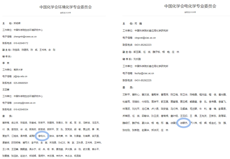 祝贺我院上海市电力材料防护与新材料重点实验室两位教授入选新一届中国化学会专业委员会委员