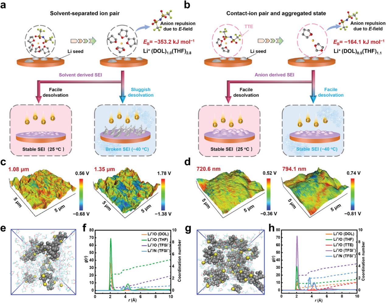 锂离子电池在恶劣环境中的严重容量衰减限制了其在电动汽车、极地探险、航空航天等领域的应用。用锂金属取代石墨负极可有效提高锂离子电池在低温下的能量密度,但不稳定的固体电解质界面(SEI)和枝晶生长导致的循环寿命衰减在−20°C以下进一步加剧。通过电解质工程构建高离子电导率的稳定SEI是解决这一问题的有效途径。