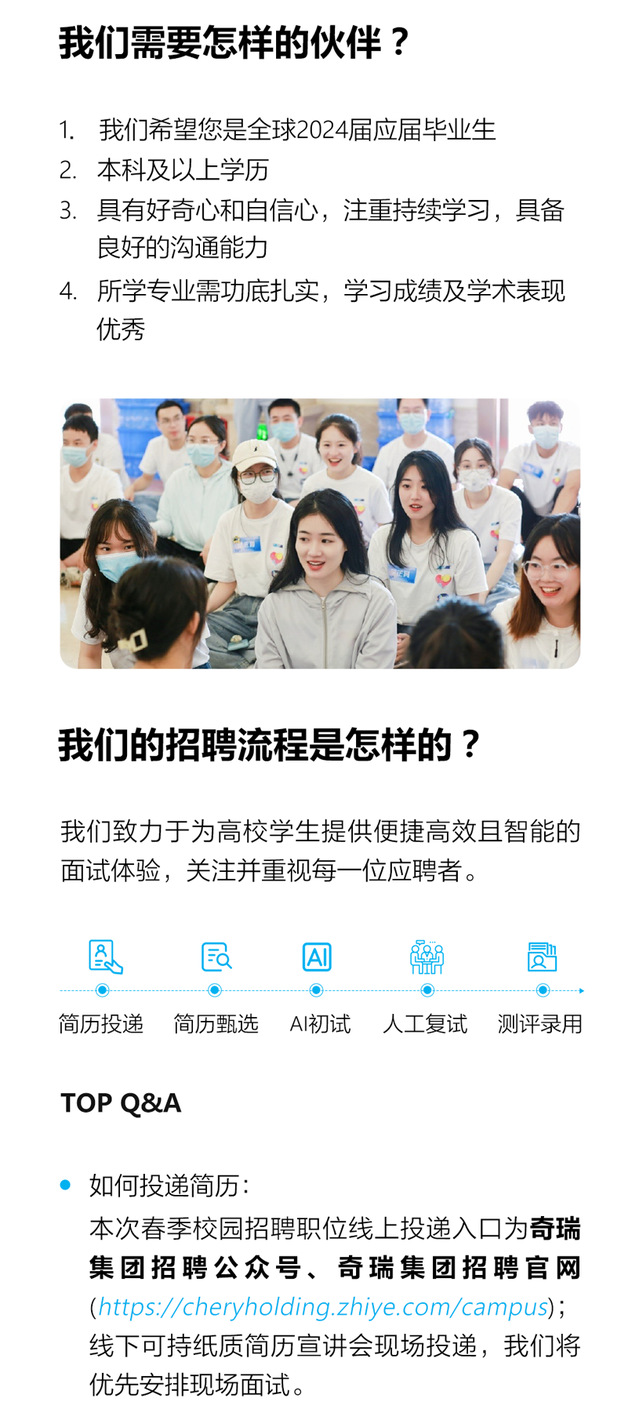 招聘 | 奇瑞集团2024届春季校园招聘