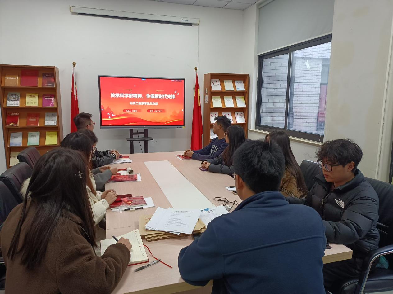 12月11日下午,化学工程系学生党支部在A207会议室开展以“传承科学家精神,争做新时代先锋”为主题的组织生活。党支部书记王涛主持。
